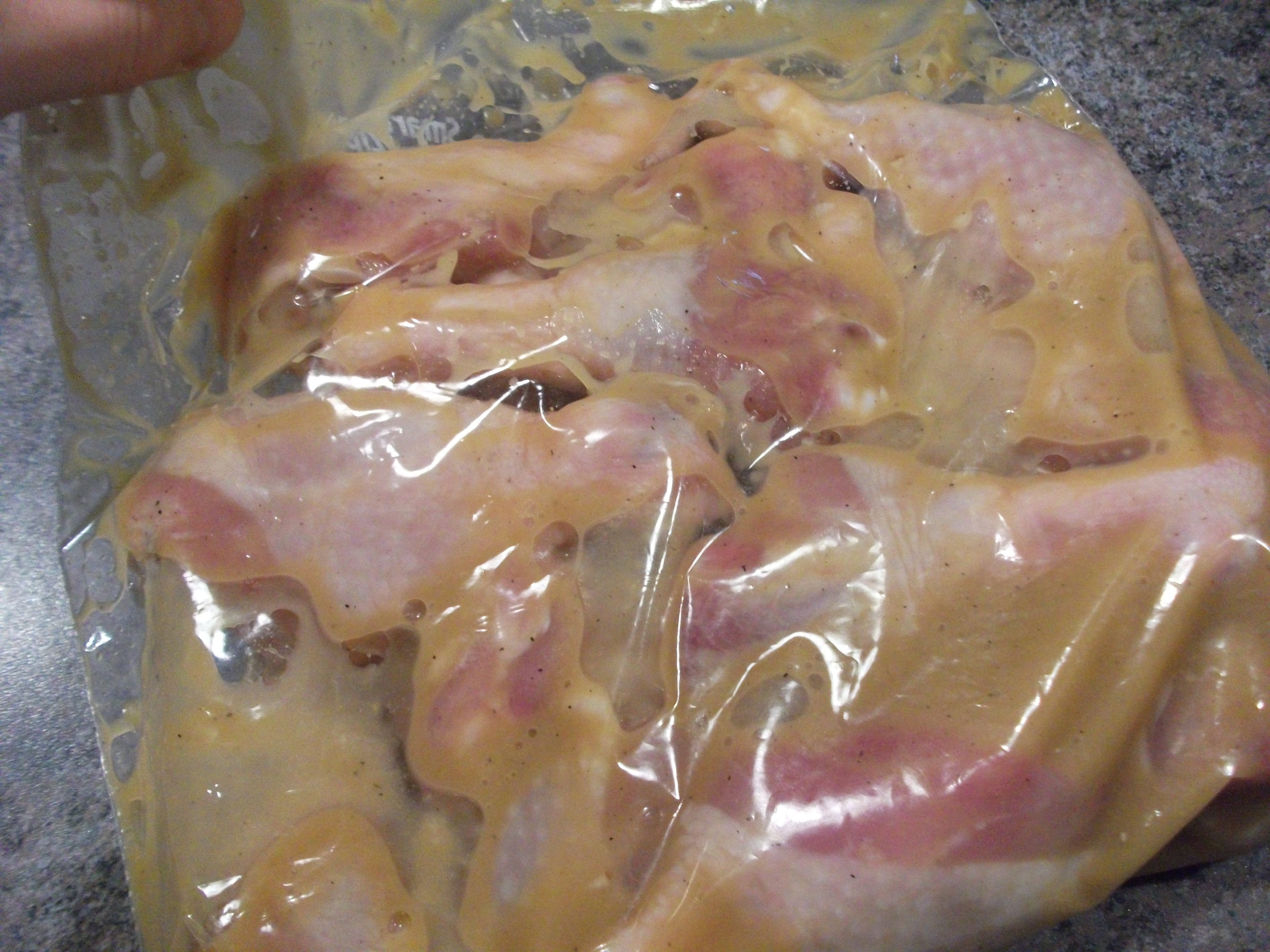 3. Verser la marinade sur le poulet, sceller le sac et mélanger afin que le poulet soit bien enrobé de marinade.