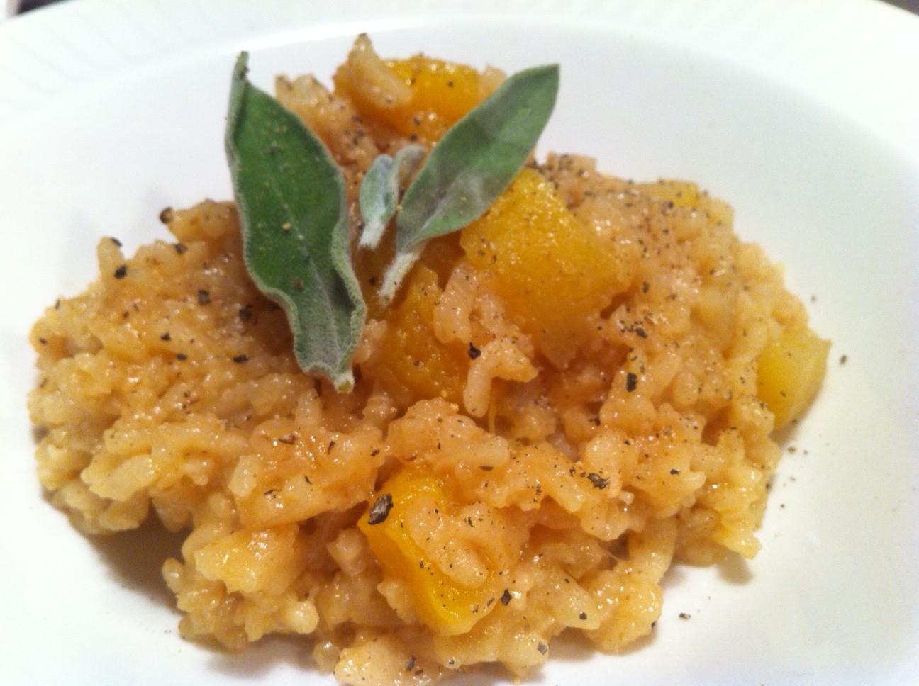 Sa première recette me permettait de passer mes morceaux de citrouille congelés de l’automne dernier (monologue sur le gaspillage), et d’essayer ENFIN mon riz arborio que j’avais acheté il y a des lunes, sans avoir le courage de me jeter à l’eau. Et oui, c’était mon premier risotto, mais pas vraiment en réalité,  et vous aller comprendre pourquoi.