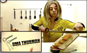 … Mais qu’est-ce que c’est que ça? Un mec déguisé en Uma Thurman comme dans Kill Bill? On bascule dans l’absurde, et ça ne m’en prend pas plus pour cliquer instantanément sur cette photo qui mène à un site loufoque nommé SPANK Magazine. Si vous aimez l’absurde, c’est à voir. Sinon, passez au prochain paragraphe. Donc le site contient entre autres une parodie d’Uma Thurman, dont la réalisation est très intéressante (on retrouve la saveur sanglante de Tarantino). J’attire votre attention sur un petit vidéo intriguant en haut à droite de ce site, nommé Pop of the day (voici le lien au cas où le vidéo aurait changé). Rien n’a de sens dans ce vidéo. Ni cette fille se déhanchant tel Brigitte Bardot dans Et dieu créa la femme, ni les paroles, ni la musique. Totalement absurde et j’adore!!!