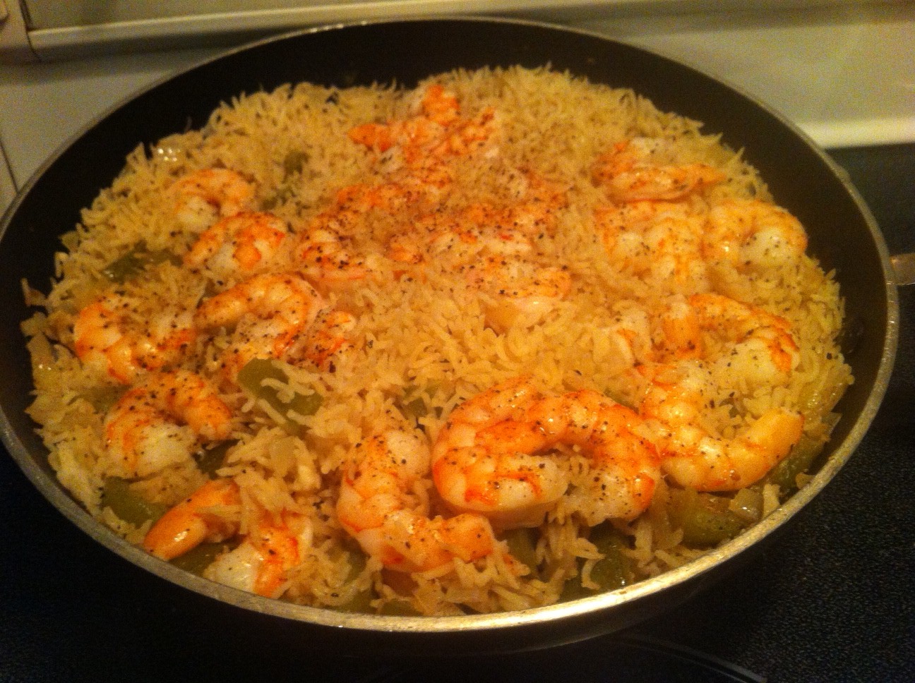 7. Si vous faites ma recette avec les crevettes, ajoutez-les 5 minutes avant la fin de la cuisson du riz ou jusqu’à ce qu’elles soient toutes roses.