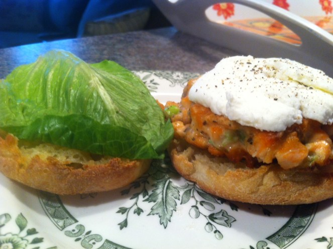 On s’est fait une magnifique bouffe entre amis vendredi soir : un duo de tartares de saumon et de boeuf. La vie de château! Le lendemain, il me restait pratiquement deux tasses de tartare de saumon. On ne mangera toujours ben pas de tartare pendant trois jours, quand même, hein? Je me suis rappelée avoir vu une très courte capsule vidéo de Louis-François Marcotte pour passer des restants de tartare. Je tape sur Google et je trouve rapidement la recette qui suit. Il propose un mini-burger avec des croquettes de tartare et du fromage de chèvre. J’ai légèrement modifié la recette car… car? Ben voyons : car je n’avais pas tous les ingrédients, comme d’habitude.