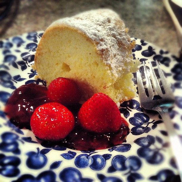 Revenons à nos moutons. Ma voisine qui est française nous a servi un jour ce simple et délicieux dessert. Le biscuit de savoie, c’est un peu comme une génoise, à la différence que l’on bat les blancs d’oeufs et les jaunes d’oeufs séparément. Les blancs d’oeufs sont montés en neige, le dessert est ainsi plus léger, un peu comme le gâteau des anges (qui ne contient pas de jaunes d’oeufs). Et depuis qu’elle nous en a servi, c’est resté emmagasiné dans le coin gauche-arrière de ma cervelle, jusqu’à ce que je me décide à l’essayer pour la première fois…