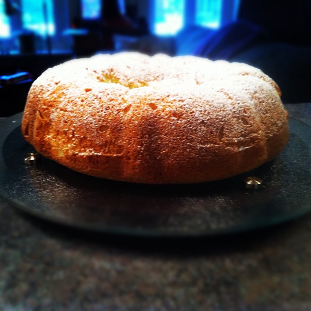 Le gâteau n’a pas levé comme dans les belles images et le démoulage fut catastrophique, surtout au centre du moule. J’avais pourtant bien huilé, mais je crois que j’aurais dû attendre une dizaine de minutes avant de démouler. Mais somme toute, c’est super bon, léger et ça fait changement. Me semble que j’aurais servi avec un bon glaçage doublement barraté… Mmmmm…