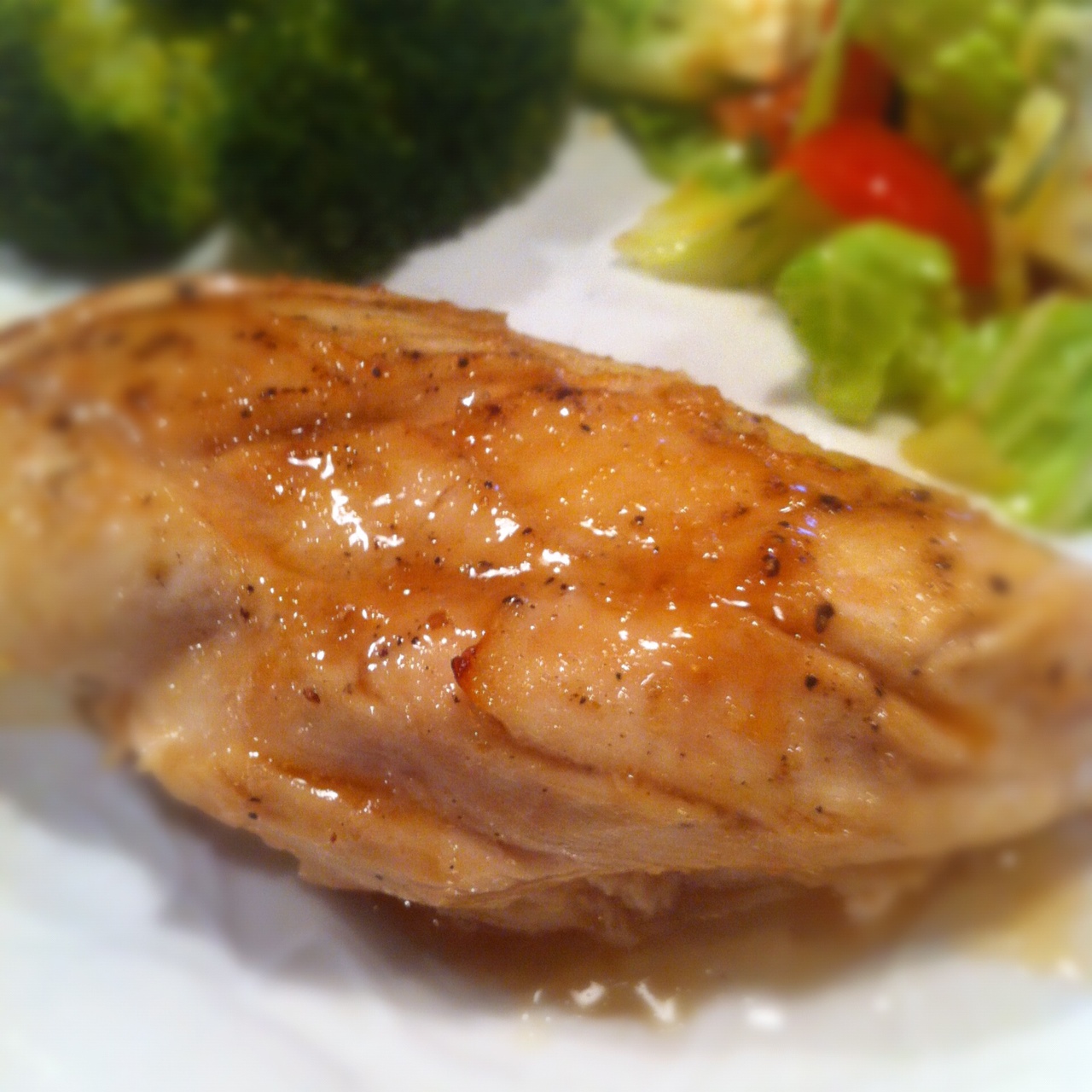 Je cherche une recette pour mes belles poitrines de poulet nourri au grains. Je ne sais absolument plus comment j’ai fait pour me retrouver sur cette page de Clodine, mais la recette me convient puisque simplissime et qu’il est déjà 18h un soir de semaine. Bonus : on fait semblant d’être riches et de manger du canard en faisant des croisillons dans la chair du poulet. Vendu !