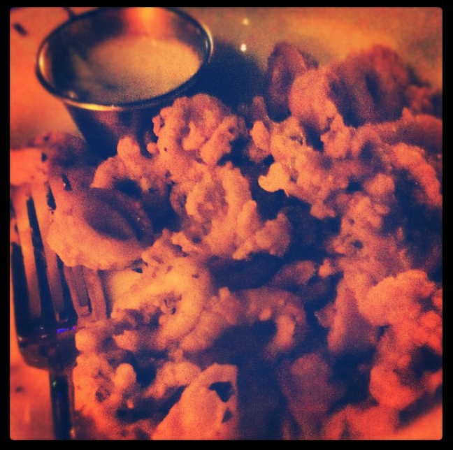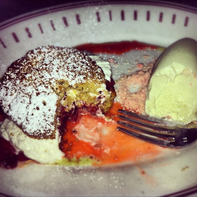En souvenir de nos fabuleuses huîtres de la veille, on n’a pu résister, fallait en commander à nouveau ce soir. Ensuite, pour mon chum, encore une fois de l’aiglefin (les produit locaux seront toujours un excellent choix), et pour moi, ce sera deux entrées de calmars frits et tartare de boeuf (j’avais trop envie!). Le dessert… Ah! Merci mon dieu pour les desserts. Un shortcake aux fraises dans un biscuit au babeurre, accompagné de crème glacée au basilic. Menoum!