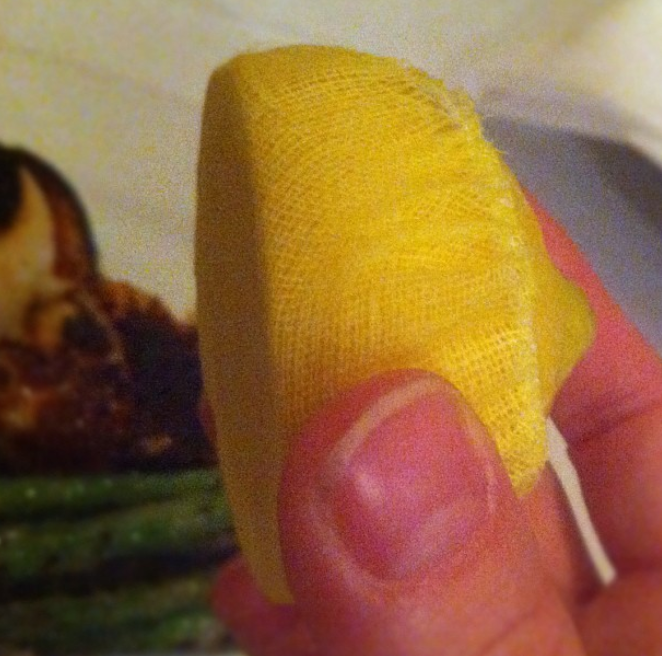 Mon chum a pris son éternel clam chowder (celle du Atlantic Fish est un award winning) et pour le plat principal, nous avons tous deux choisi les « catch of the day« , soit de l’aiglefin pour mon chum et des pétoncles noircies pour moi, le tout accompagné d’une bouteille de rouge à l’étiquette humoristique. La cuisson était parfaite, mais les pétoncles un chouïa trop noircies et épicées. Le goût de la chair de pétoncle est si délicat, à mon avis il ne faut pas la tuer avec trop d’épices. Par contre, je VEUX que tous les restaurants servent leurs morceaux de citrons dans un petit filet comme ça. Trop pratique.