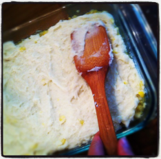 J’ai sauvé des poubelles (attendez avant de paniquer, continuez à lire) un demi-sac de vidanges (j’ai dit de continuer à lire!) de blé d’inde déjà tout épluché de mon club de volleyball de plage, un restant de tournoi. Que fait-on avec 50 blés d’indes quand on est cinq? Ben on commence par en manger à la façon traditionnelle québécoise, (bouillis 8 minutes, beurre et sel), mais après une couple de fois… Ça a pas trop été long à computer. Pâté chinois ! Et ai-je besoin de mentionner que c’est dimanche ?