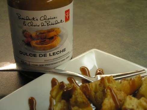 Ça c’est la partie cochonne de la recette. Si vous ne connaissez pas le dulce de leche, lâchez ce que vous êtes en train de faire tout de suite et allez vous en chercher un pot à l’épicerie right now! J’achète celui de la marque le Choix du President du Loblaws. Si je me souviens bien, c’est dans la même section que les confitures et beurre d’arachide. Y’a plein de recettes sur le web pour en faire « from scratch » mais pourquoi se casser la tête quand c’est bon « directo » du pot?