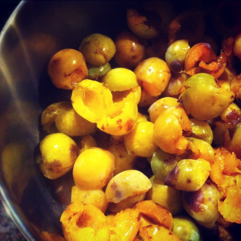 Ben franchement, je suis agréablement surprise. Pour une première avec des prunes jaunes, je doutais du résultat mais le goût est très semblable à celui des prunes Mont-Royal violettes, qui donne une confiture d’un rouge intense. Mais anyway, j’ai une histoire d’amour avec la confiture de prunes qui date de ma pré-adolescence, j’étais vendue d’avance.