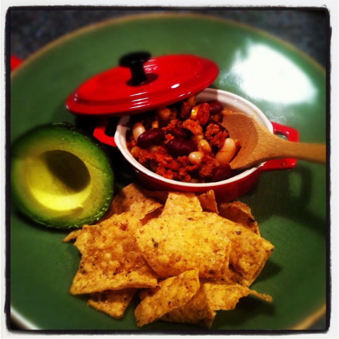 Mon chum capote littéralement sur la bouffe mexicaine et particulièrement le chili depuis qu’il a travaillé à Roswell (Nouveau Mexique) il y a une plusieurs années. Ça tombe bien – vous êtes sûrement au courant que j’ai une tonne de maïs en grains qui croupissent dans mon congélo (car mon chum capote également sur le maïs). J’ai essayé plusieurs recettes de chili. Celle-ci est la troisième à paraître sur mon blogue et c’est définitivement la meilleure des trois. Ironiquement, c’est de loin la plus simple.