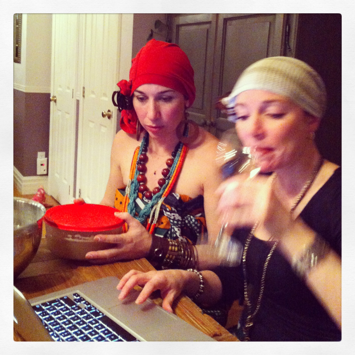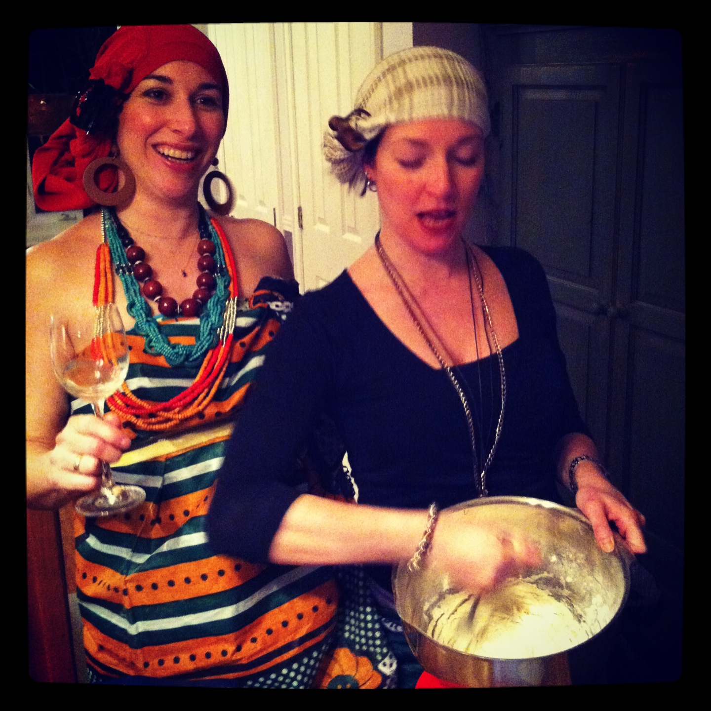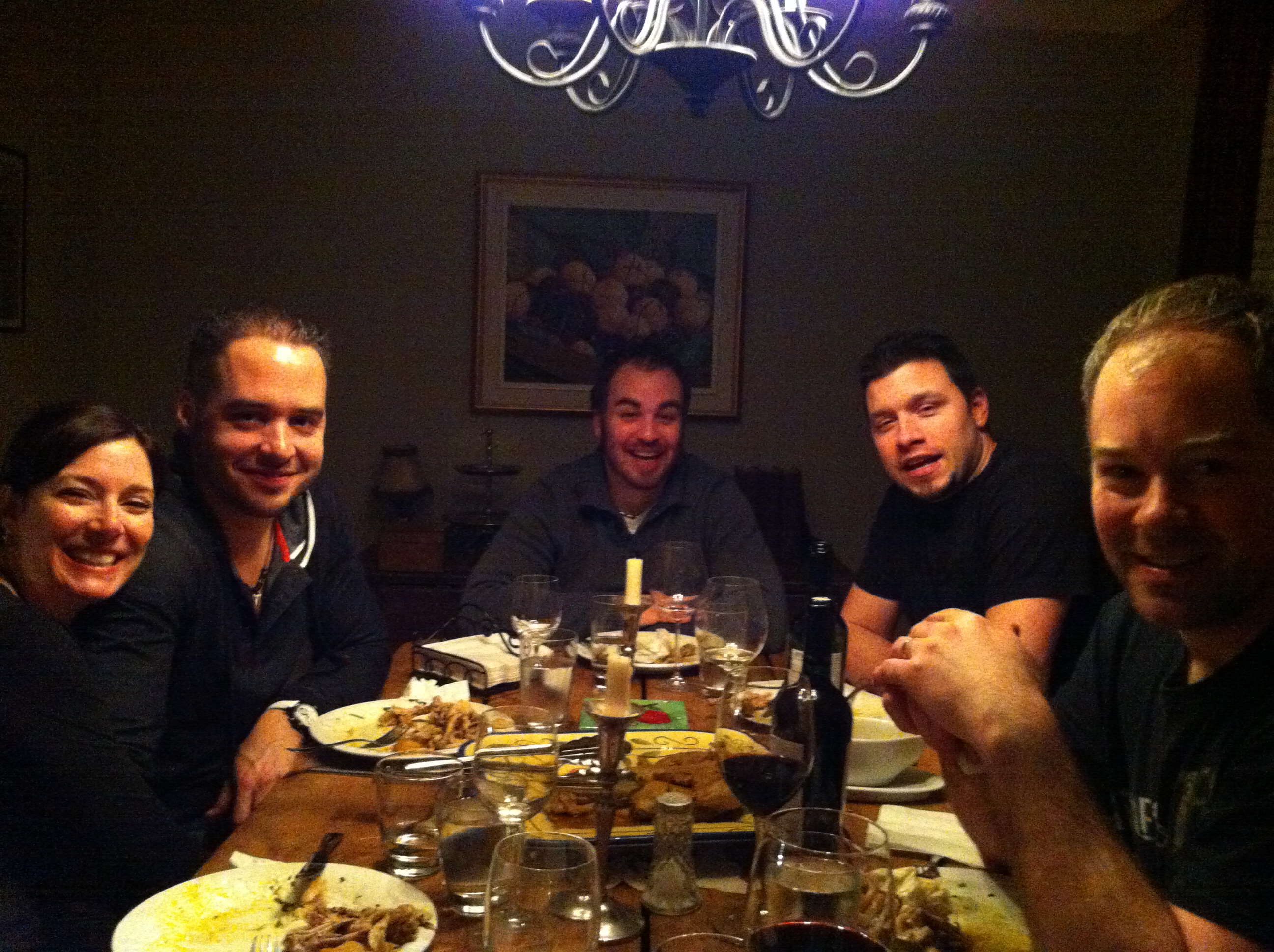 Bon, mes boules de manioc étaient peut-être trop grosses car le milieu n’a pas frit complètement, mais au goût, c’était pas si mal puisqu’on les a pratiquement toutes mangées. Le poulet était bon mais j’ai quand même dilué la sauce graine avec beaucoup de bouillon de poulet… Bon ok, finalement, c’était peut-être finalement un souper québécois à saveur africaine… Au diable, on a eu une bonne bouffe entres amis, et beaucoup de fun.