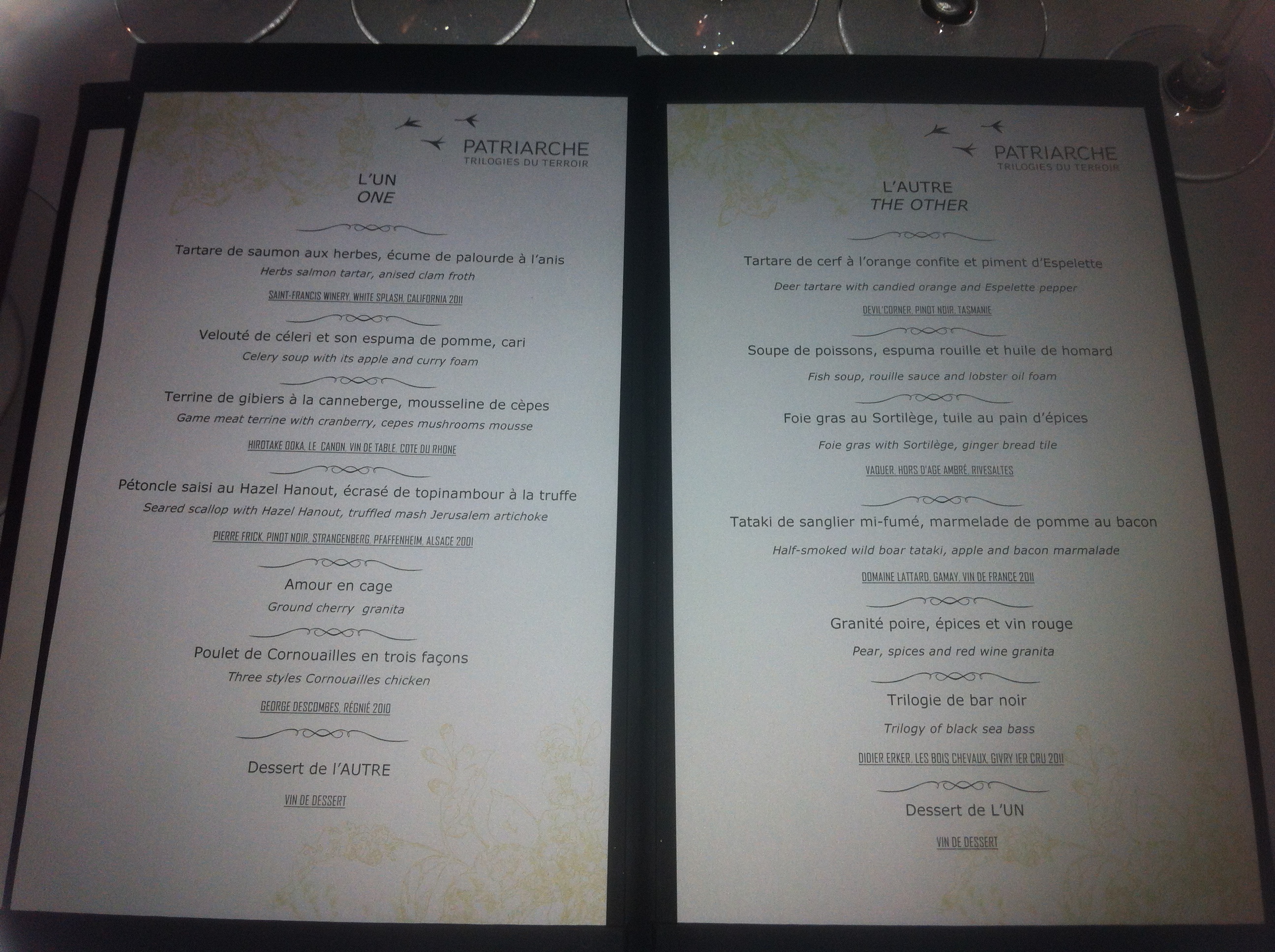 On nous y présente donc un menu spécial appelé L’Un et L’Autre, ainsi qu’un accord mets-vin pour compléter le tout. On fonce, le tout pour le tout !