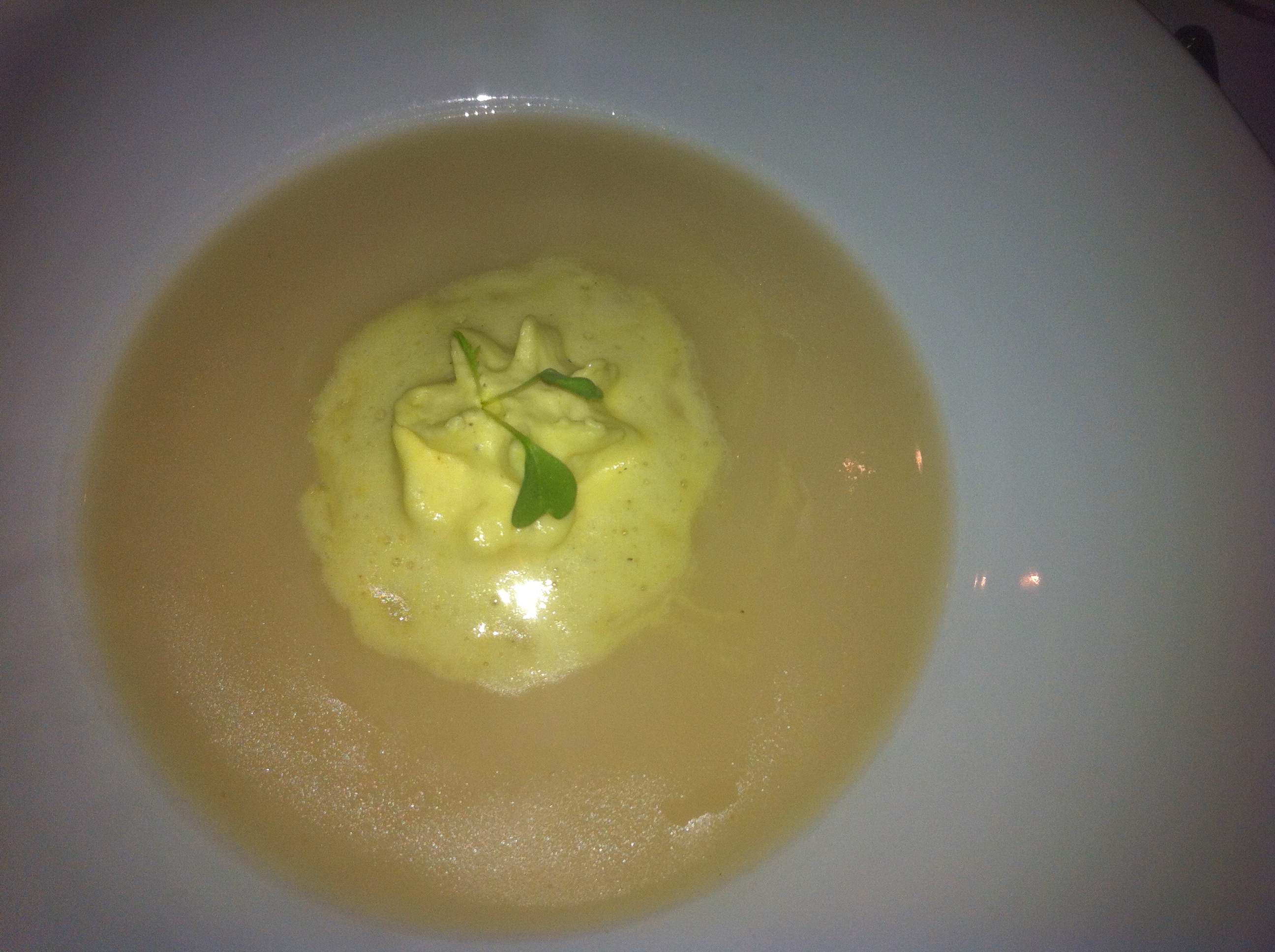 Velouté de céleri et son espuma de pomme, cari : mon coeur fait boom. Un espuma!