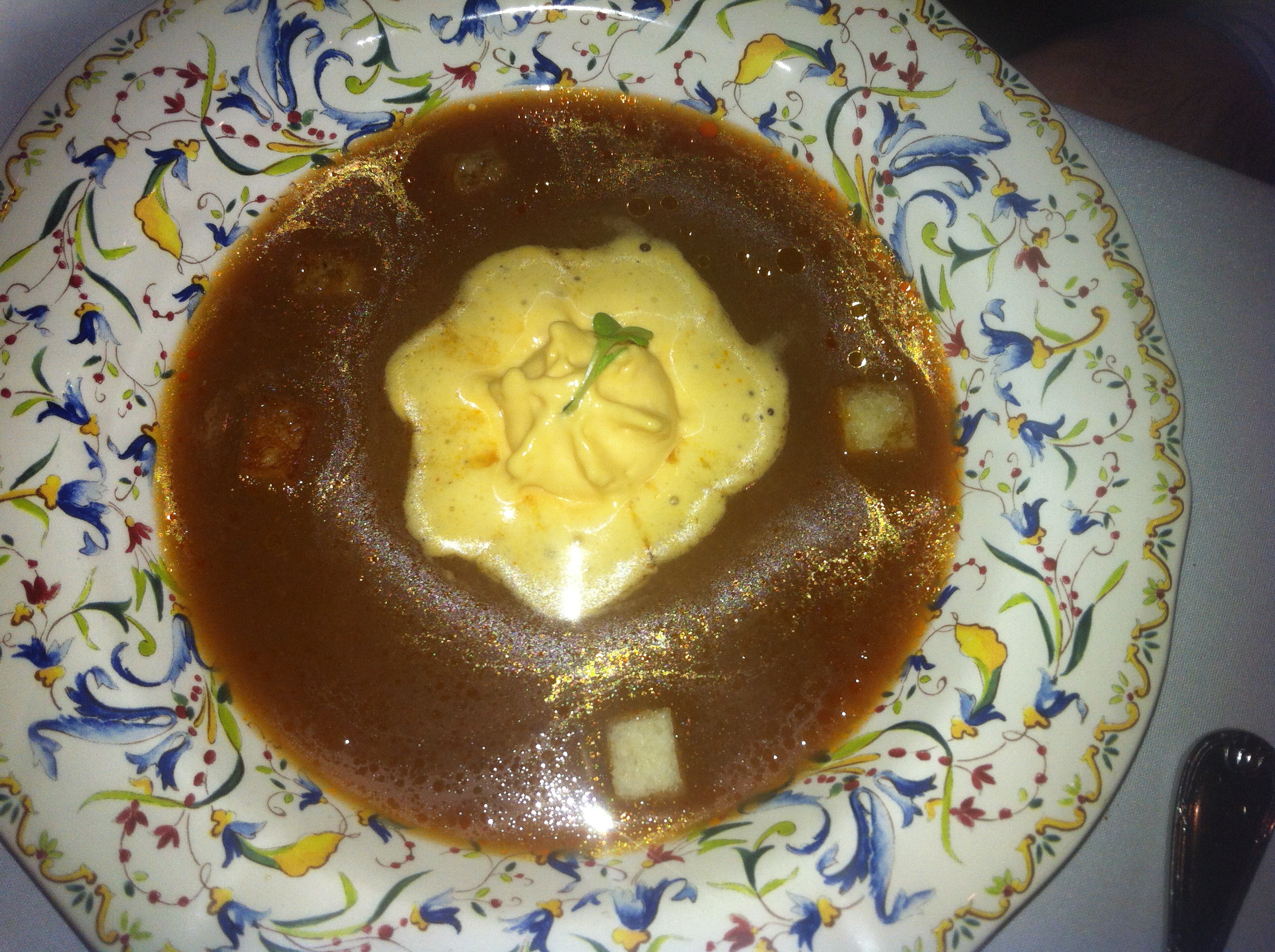 Soupe de poisson, espuma rouille et huile de homard (re-boom!)