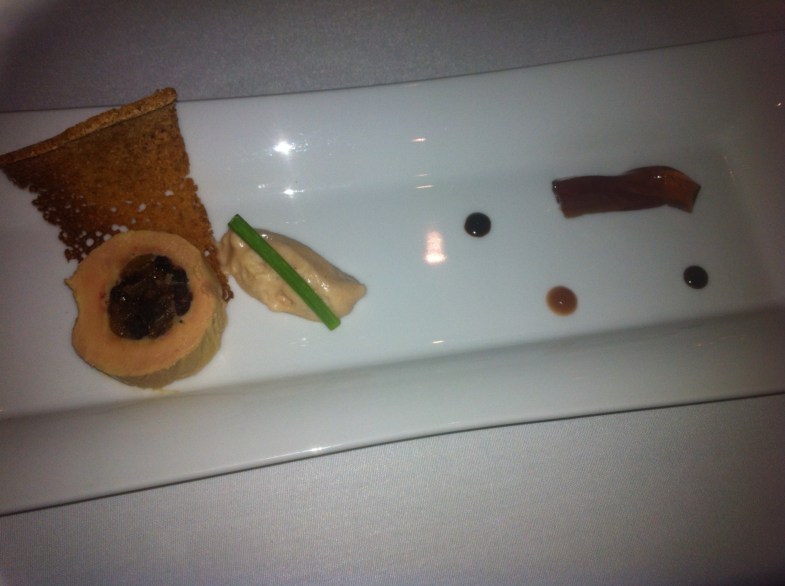 Foie gras au Sortilège (liqueur à l’érable), tuile au pain d’épices :