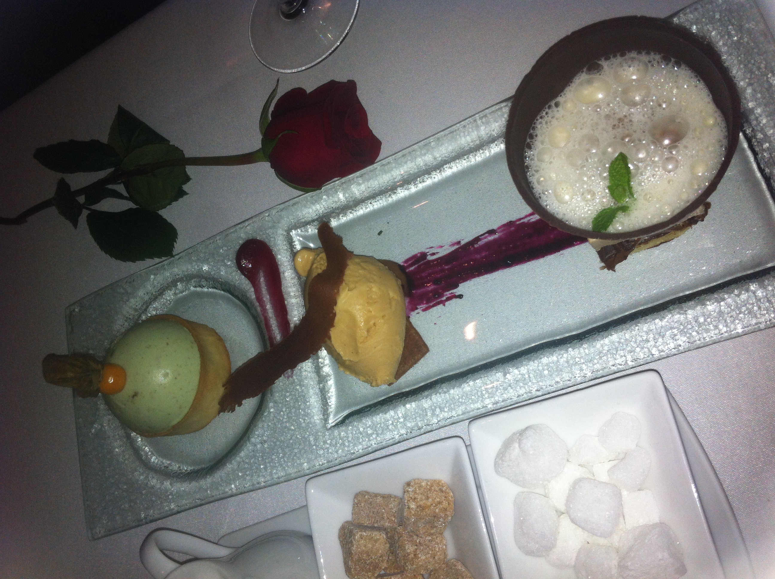 Et l’un des desserts, accompagné d’une petite pensée fleurie pour madame :