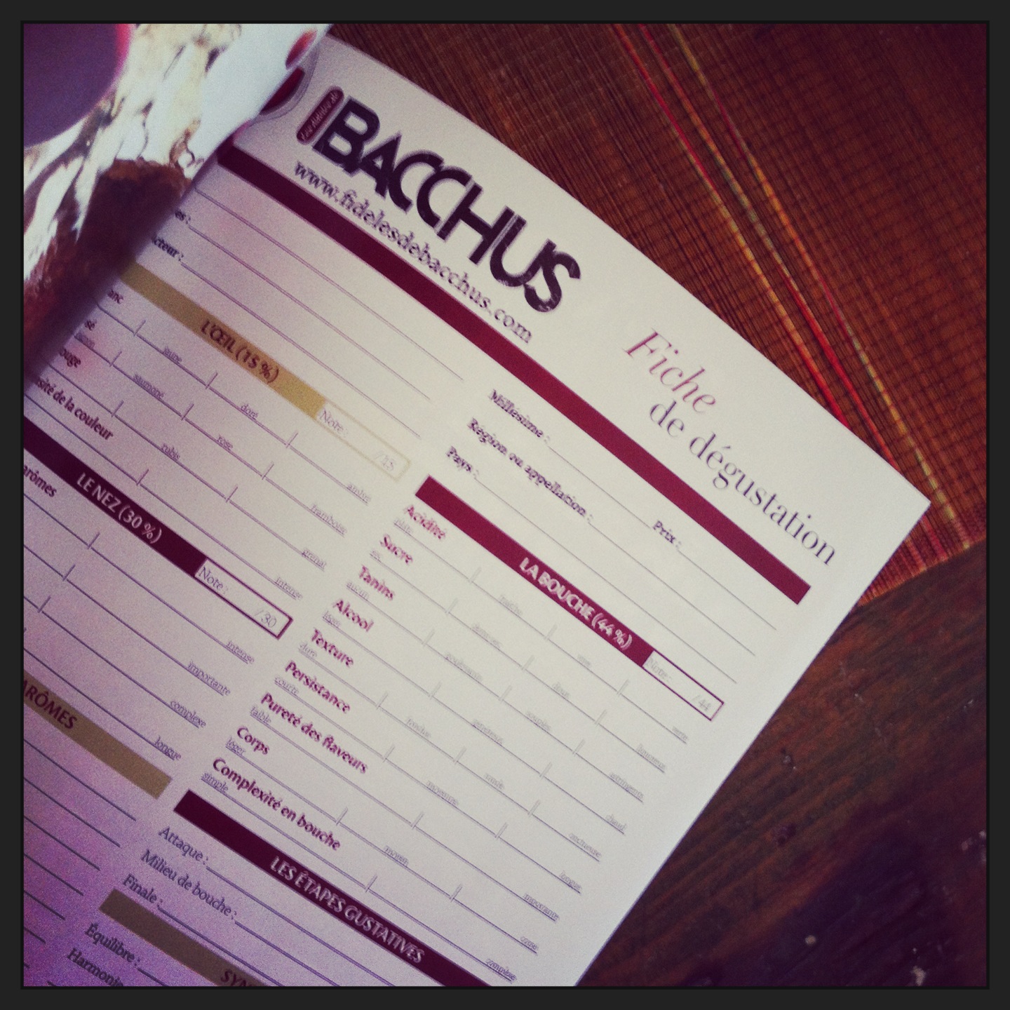 Mon second choix de lecture s’est arrêté sur le magazine Bacchus qui contient beaucoup de suggestions de vins, dont plusieurs blancs (moi qui ne m’y connaît pas trop dans les blancs – parfait!) et également une fiche de dégustation. Mucho plaisir entre amis :