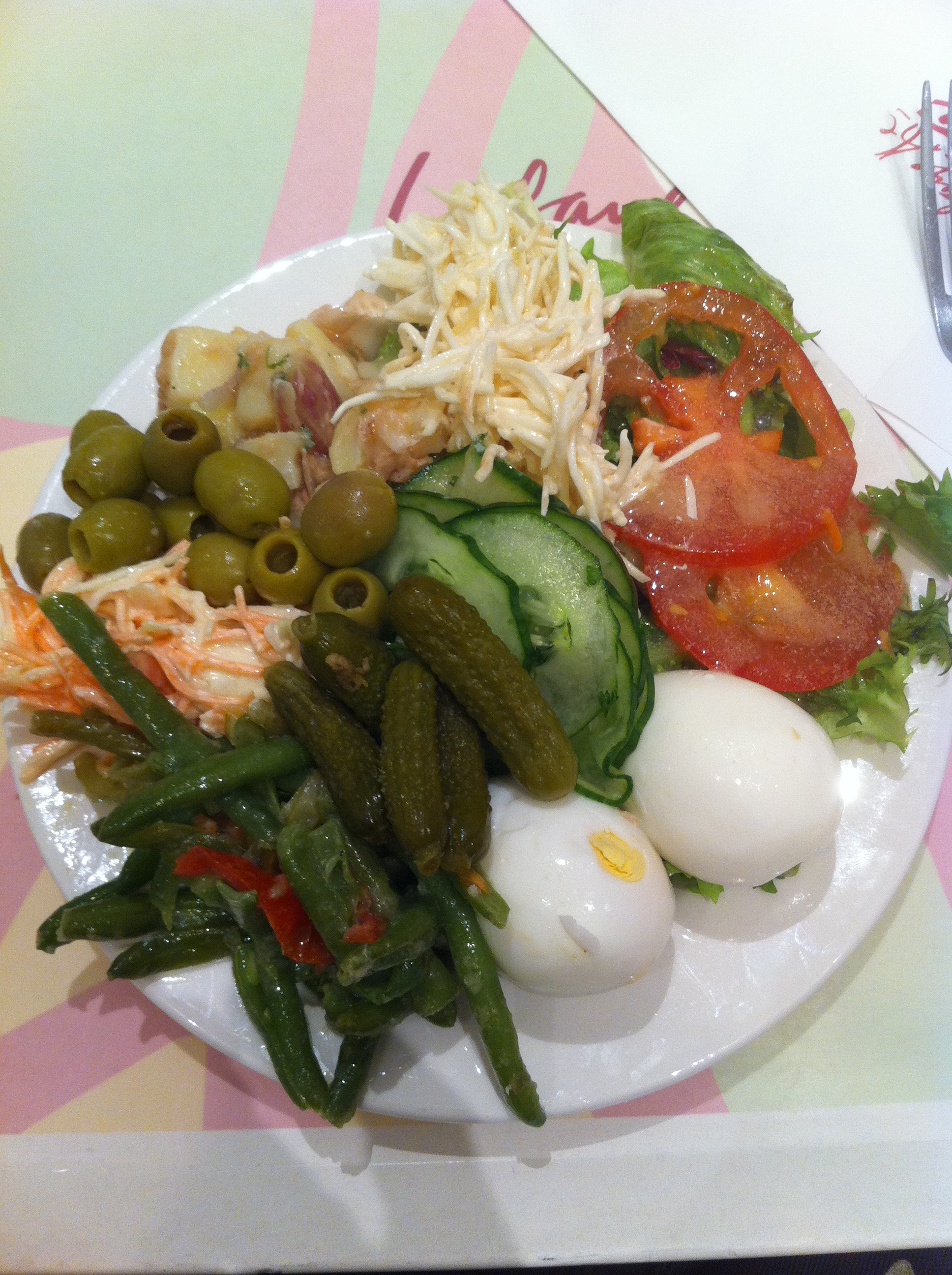 Et si votre estomac n’en peu plus de tout ce gras et de toutes ces protéines, arrêtez au sommet des Galeries Lafayette pour une assiette pleine de salades au coût de 5,80 euros :