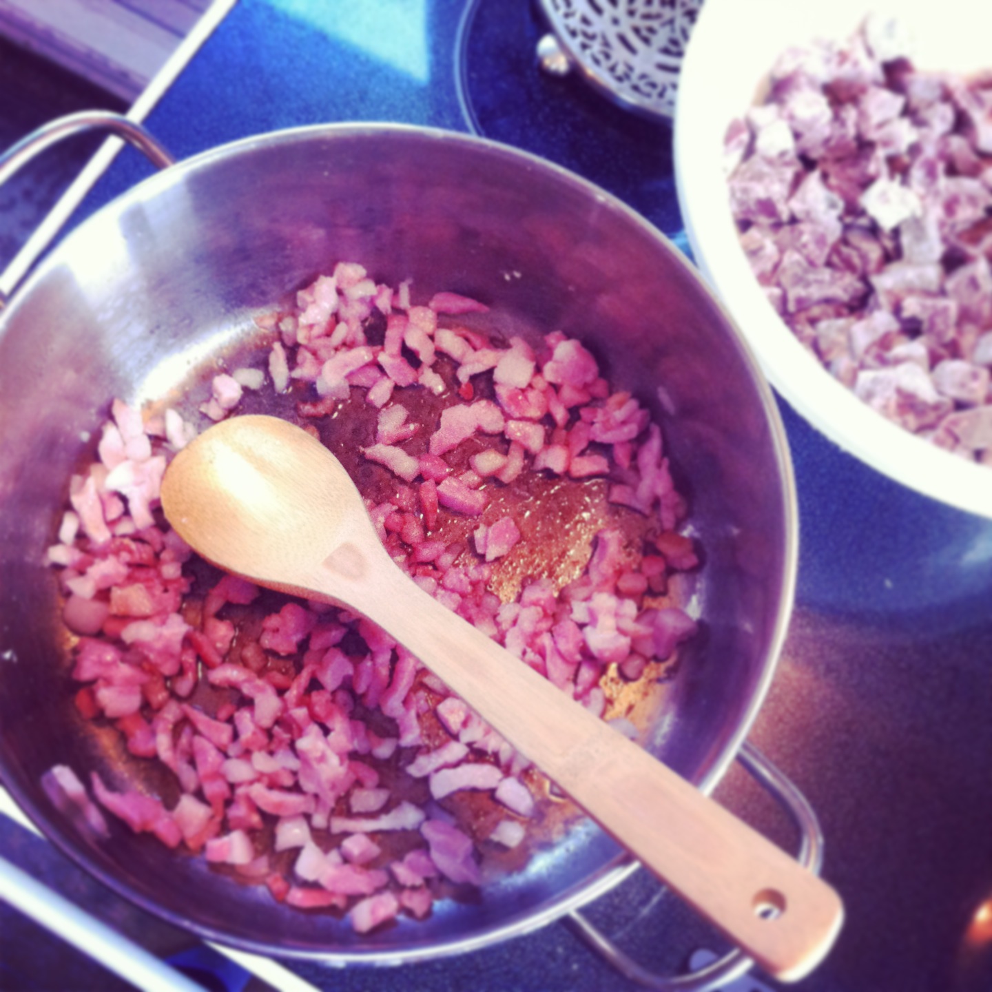 3. Retirer du feu le mélange de légumes et lard salé et réserver.