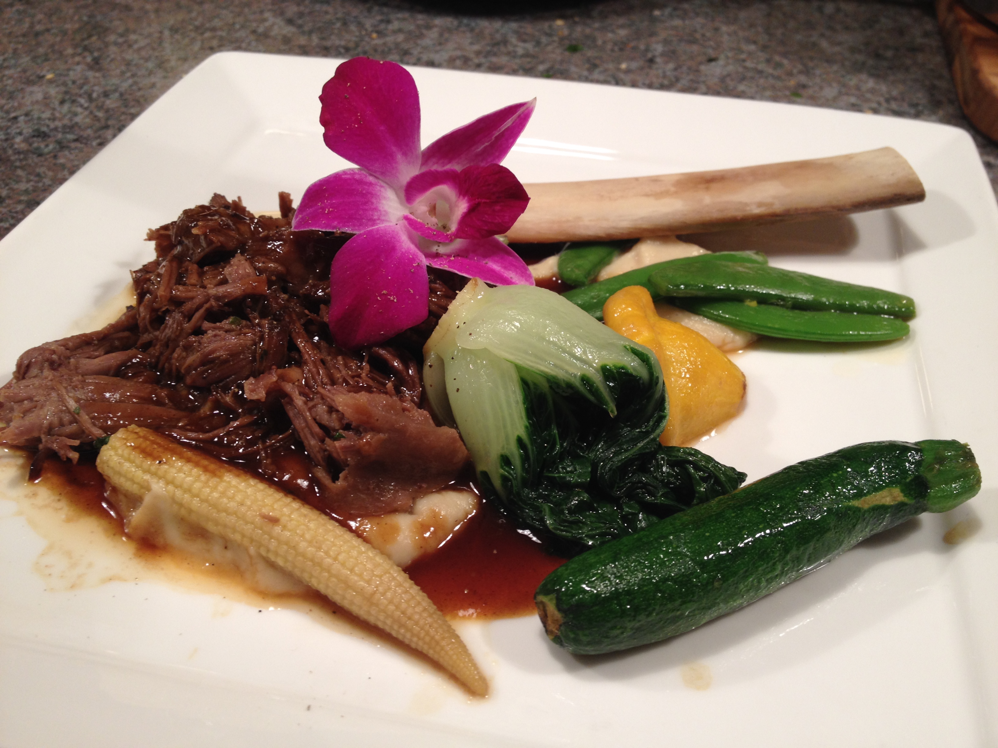 Plusieurs bons mangeurs (incluant moi-même) étaient ravis de cette pièce de bœuf qui nous donne envie de se tambouriner le torse : un magnifique short rib de bœuf :