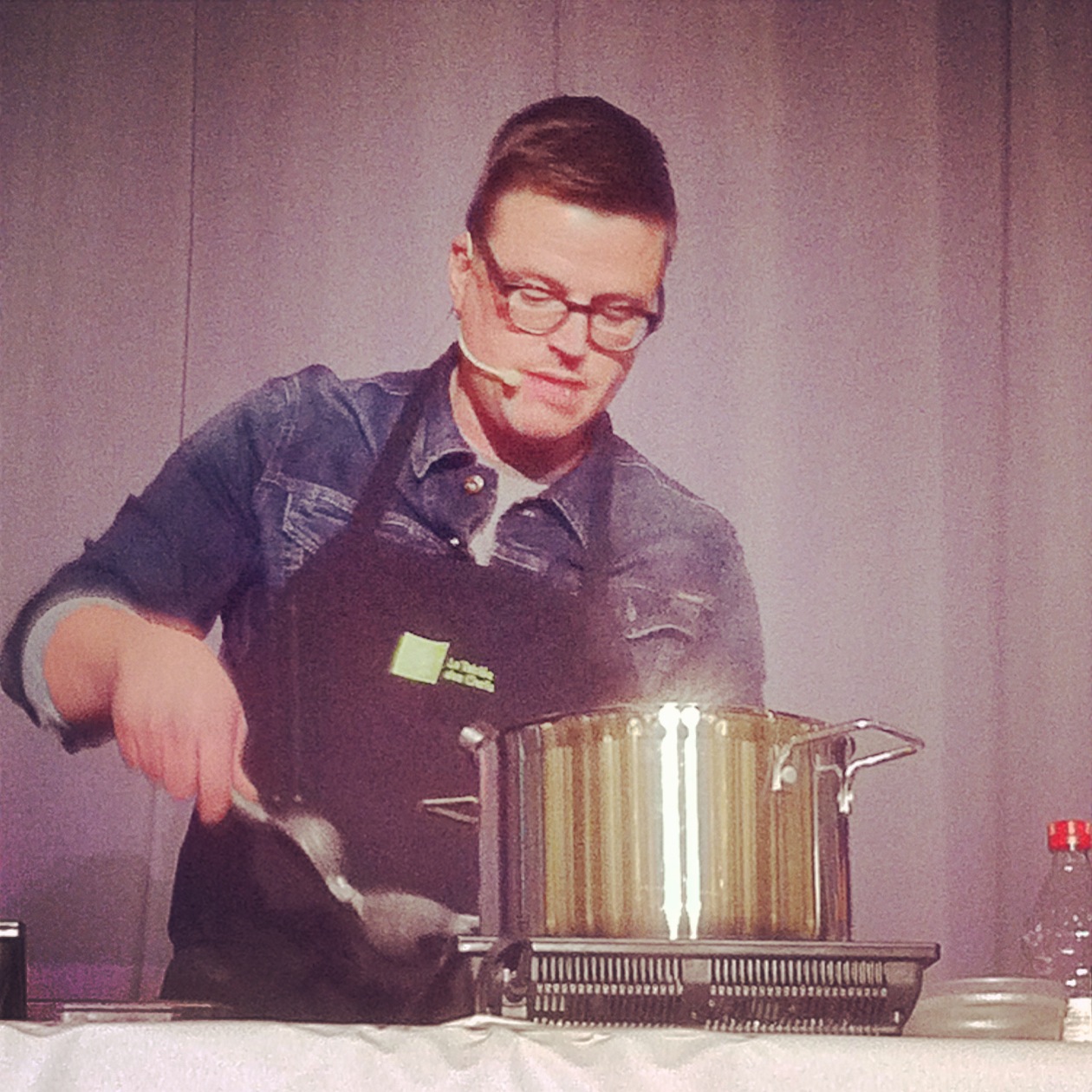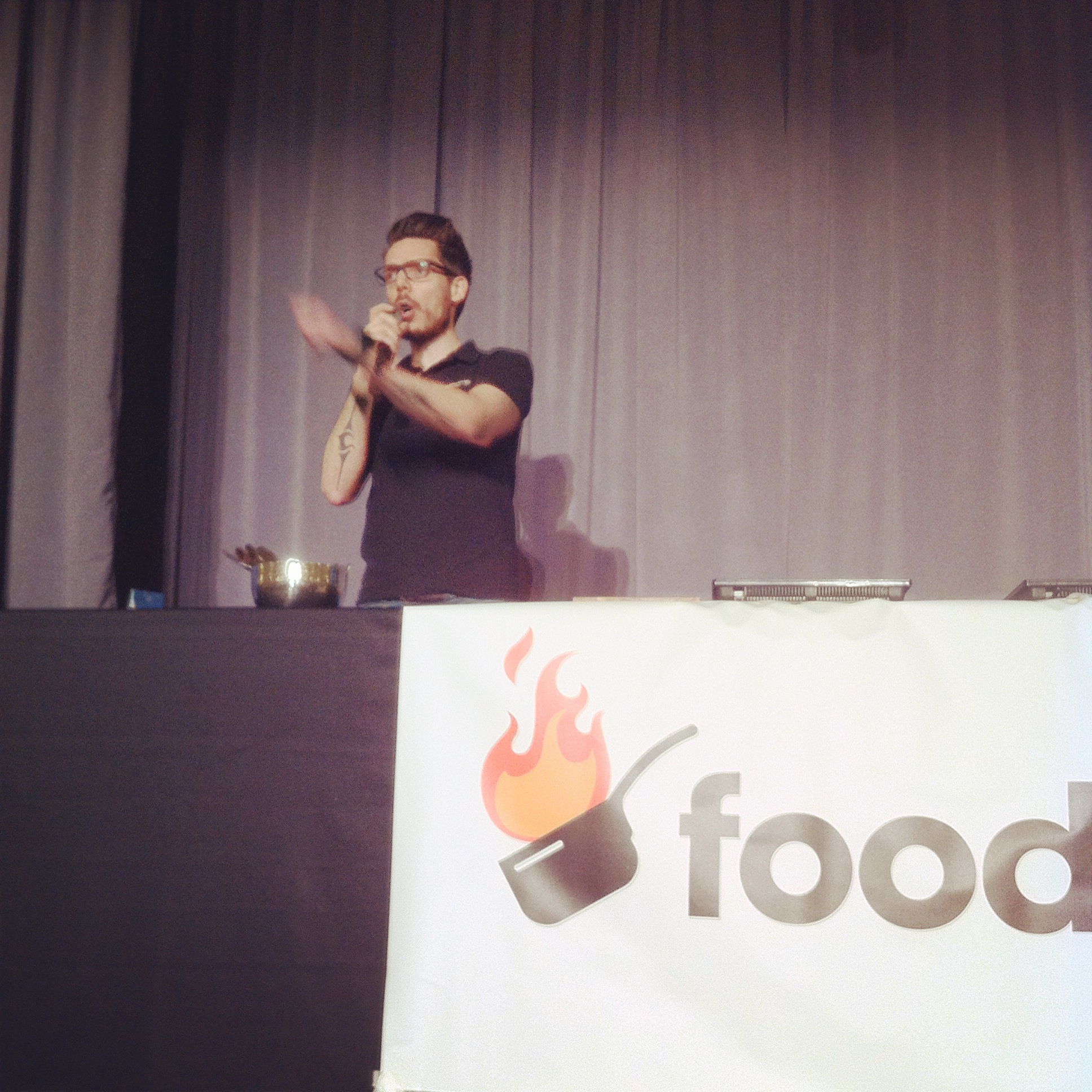 Bon, bon, bon. Calmez-vous les foodies. Danny St-Pierre en est à sa troisième apparition au Foodcamp Québec. Chaque fois que ce cuistot verbomoteur embarque sur scène, c’est la FO-LIE. Vous pouvez le constater dans son émission Qu’est-ce qu’on mange pour souper, il possède sa propre vision burlesque du monde qu’il interprète magnifiquement à toutes les sauces, et je ne parle pas de bouffe ici. Quel personnage articulé d’originale façon! De surcroît, il a un formidable sens de la répartie.