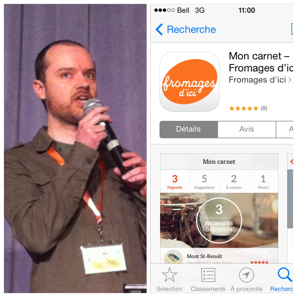 Permettez-moi une courte incursion des Fromages d’ici qui viennent tout juste de lancer une application gratuite pour iphone, Mon Carnet, qui vous permet de mieux connaître et choisir vos fromages. Quand on sait qu’il existe maintenant plus de 400 fromages québécois, ça vaut la peine de consulter ce formidable répertoire (présenté ici par l’agence Cossette) :