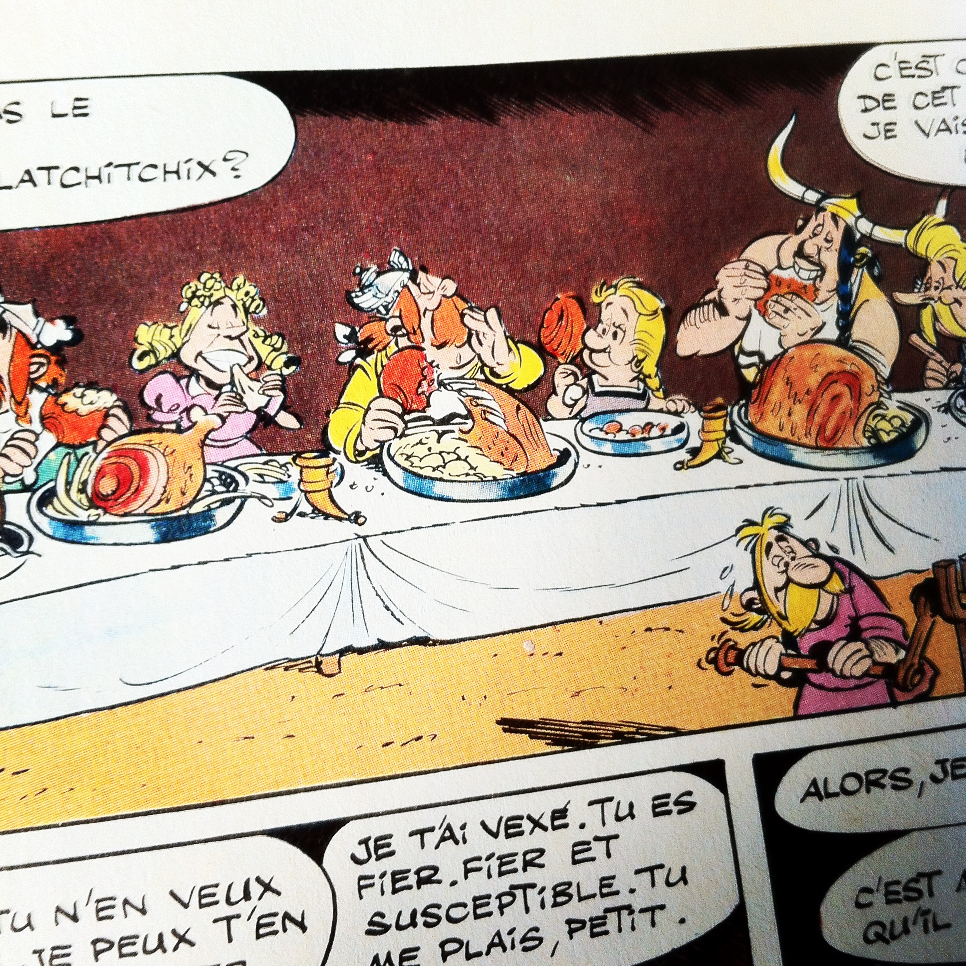 J’omets plein de détails comme le magnifique menu décoré d’un mini-menhir et utilisant la police des BD de Goscinny, de notre bataille de boucliers, du concours de bras de fer, des nombreuses blagues de nos chers esclaves qui étaient en fait de sympathiques comédiens, des peaux de fourrure disposées ici et là…