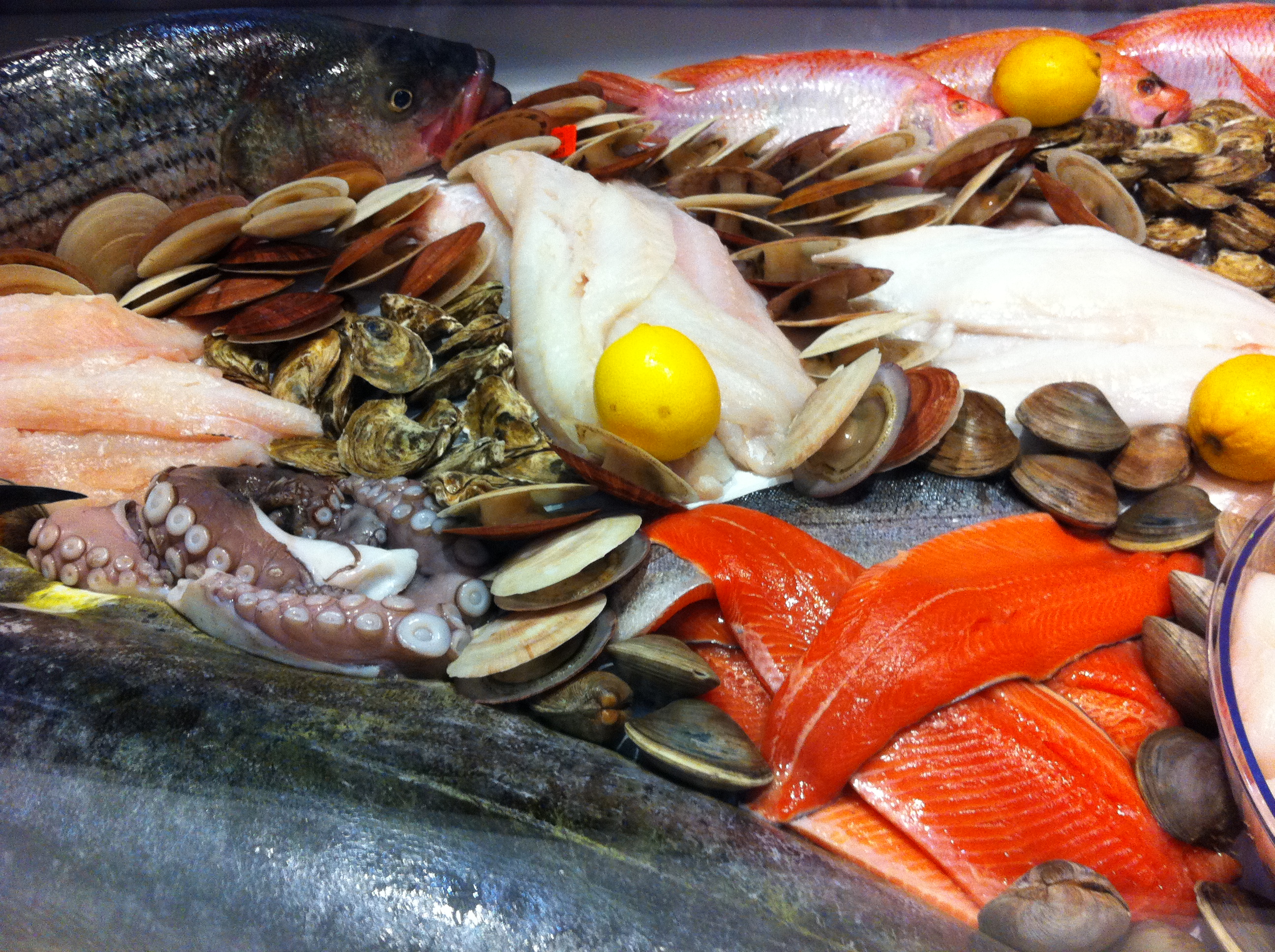 – Des fruits de mers vivants (palourdes, huîtres, homard)