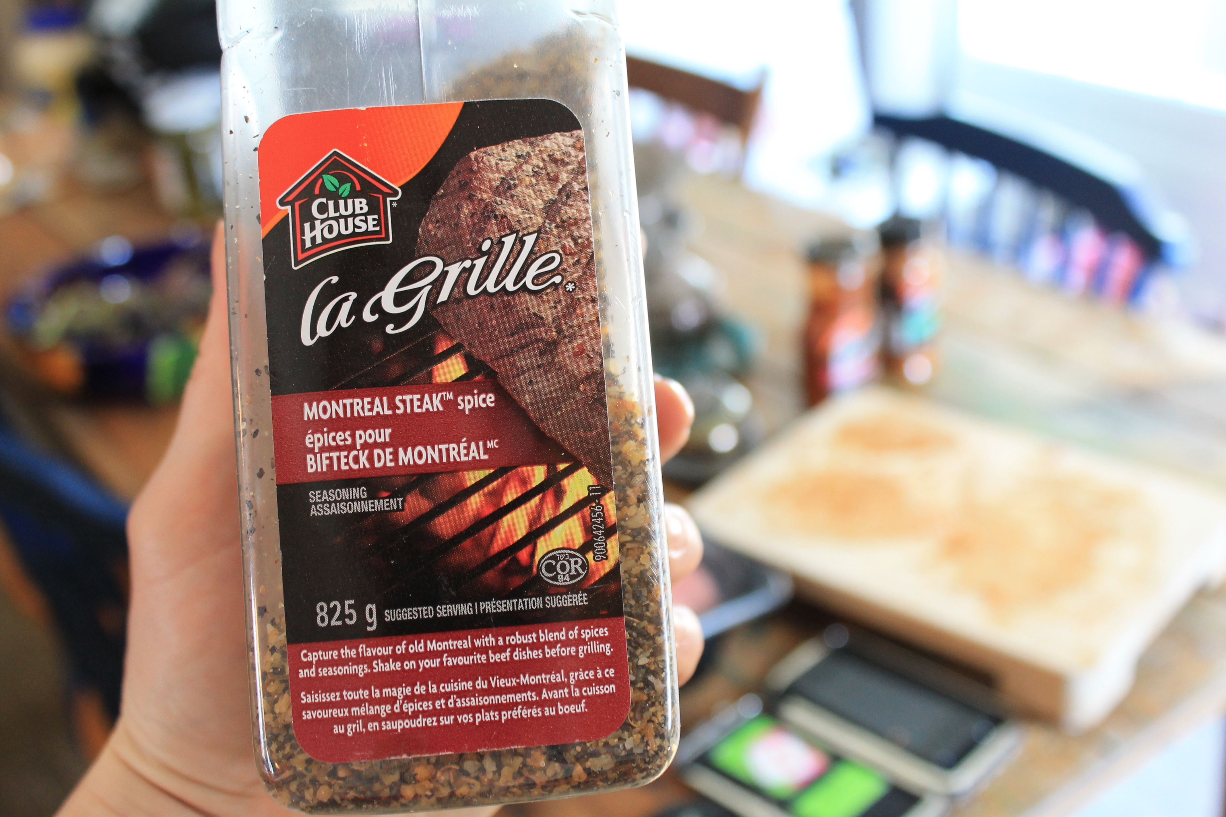 Comme la cuisson du poulet est plus lente et à feu plus doux, on a débuté avec des poitrines de poulet assaisonnées encore une fois avec les épices Club House. Je n’avais encore jamais essayé ces épices Poulet de Montréal