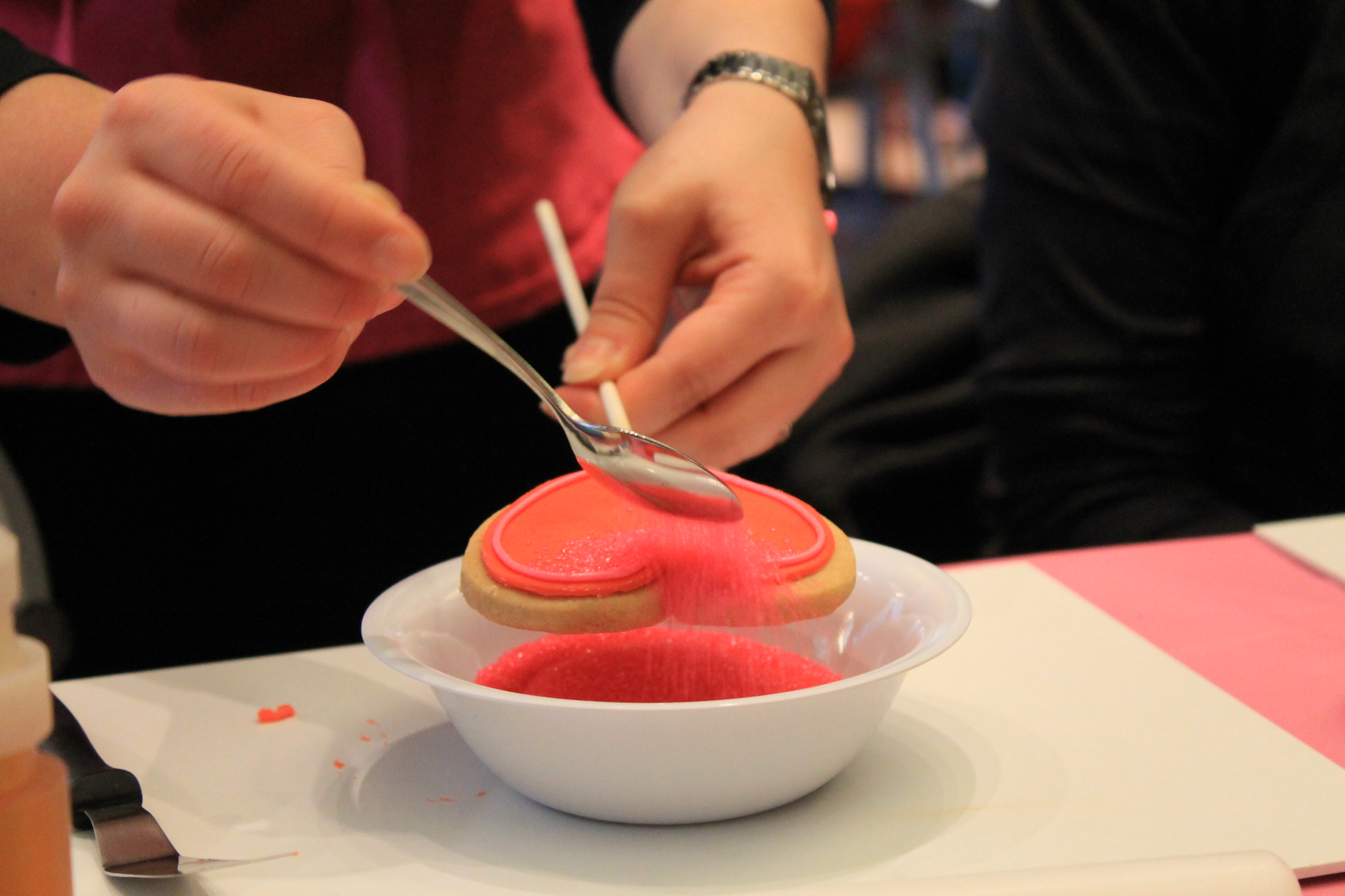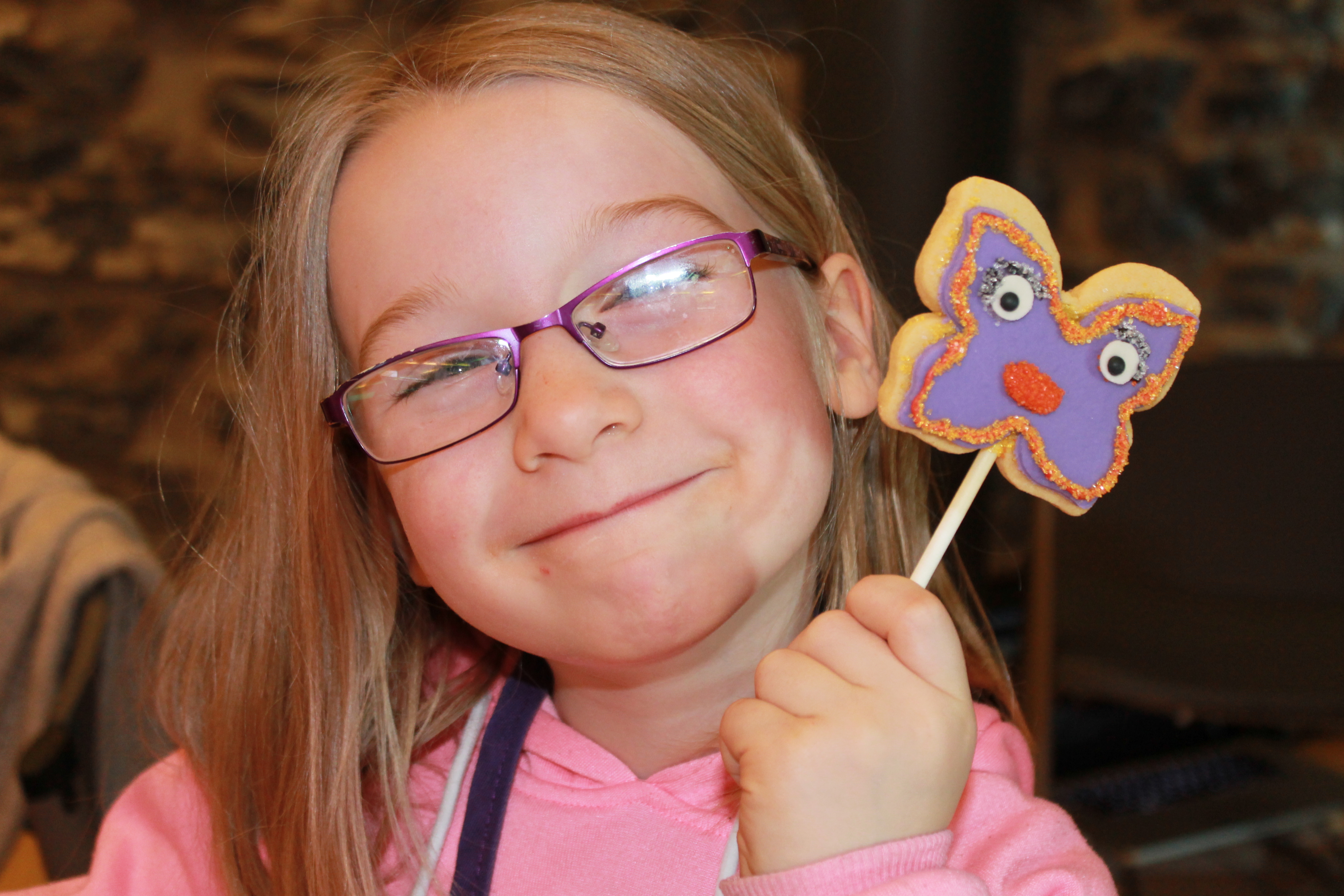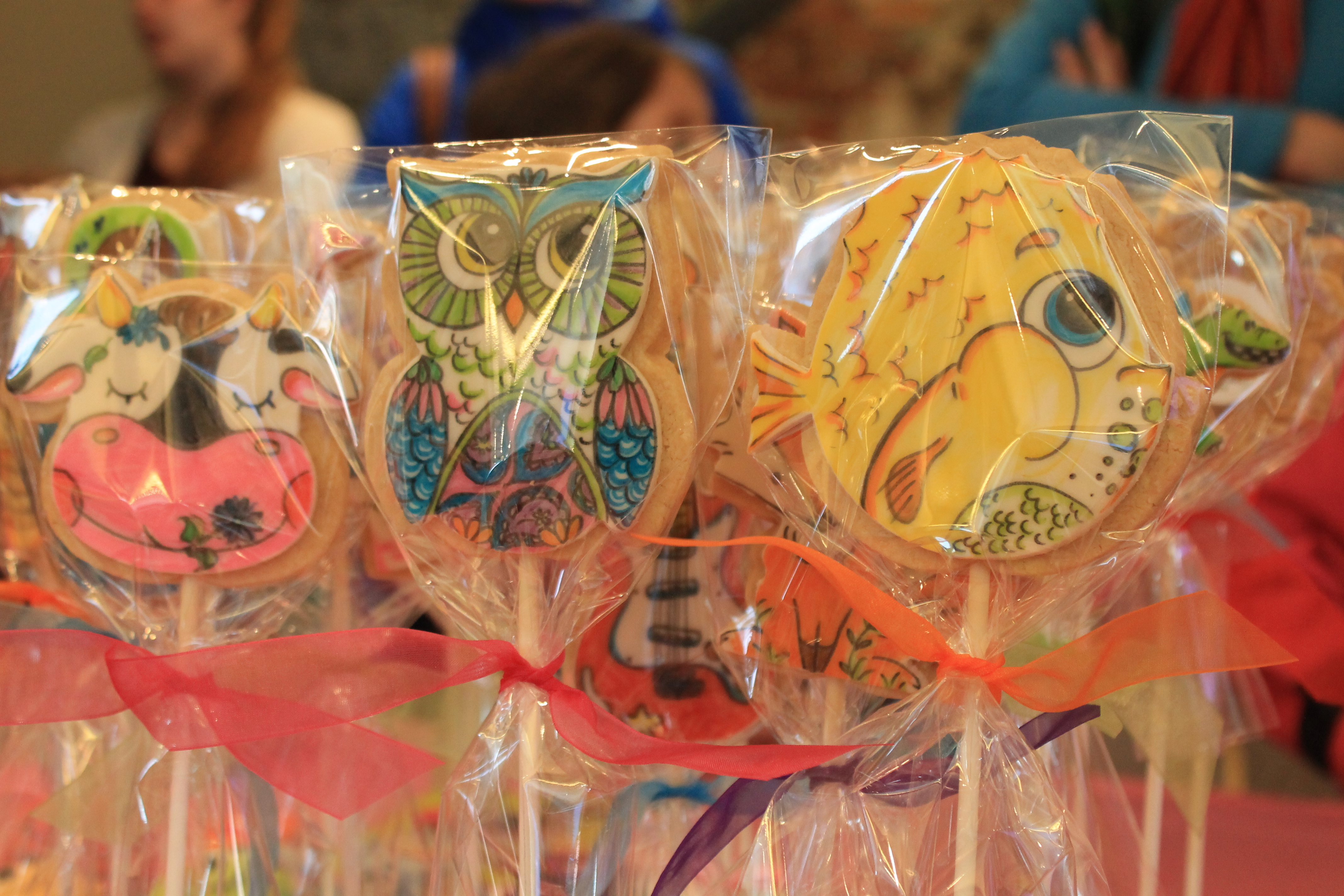 On peut d’abord y décorer nos biscuits-sucettes faites de sablés pur beurre, soit peint à la main ou en le décorant avec du glaçage royal et du sucre coloré :