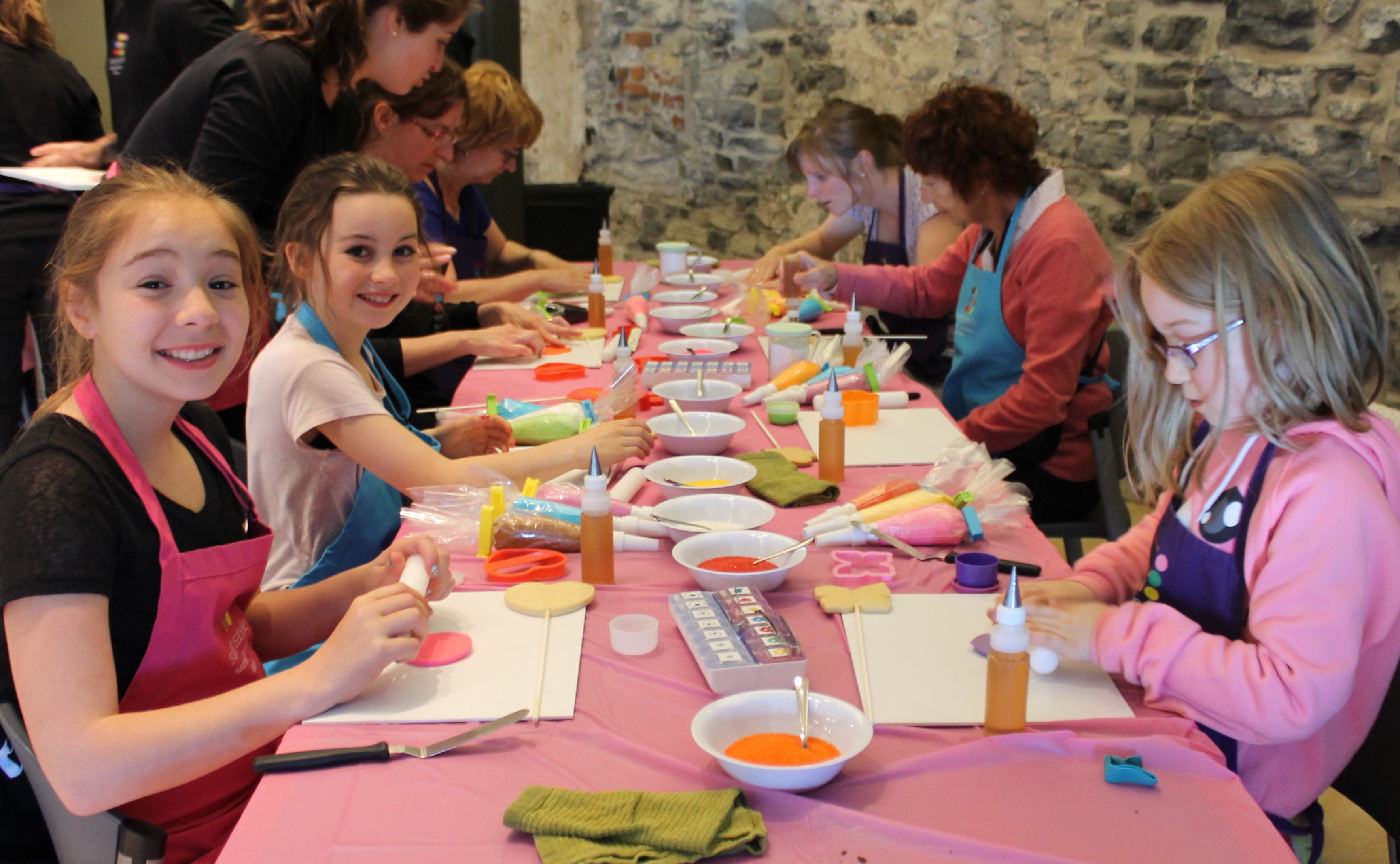 Ma petite troupe a bien aimé l’expérience (Nellie 6 ans, Charlotte 10 ans et son amie Laurie 11 ans). Elles ont bien aimé avoir l’embarras du choix tant pour les couleurs de pâte de guimauve et de sucre, que pour les modèles de décoration. Il y en a pour tous les goûts, même pour les garçons !