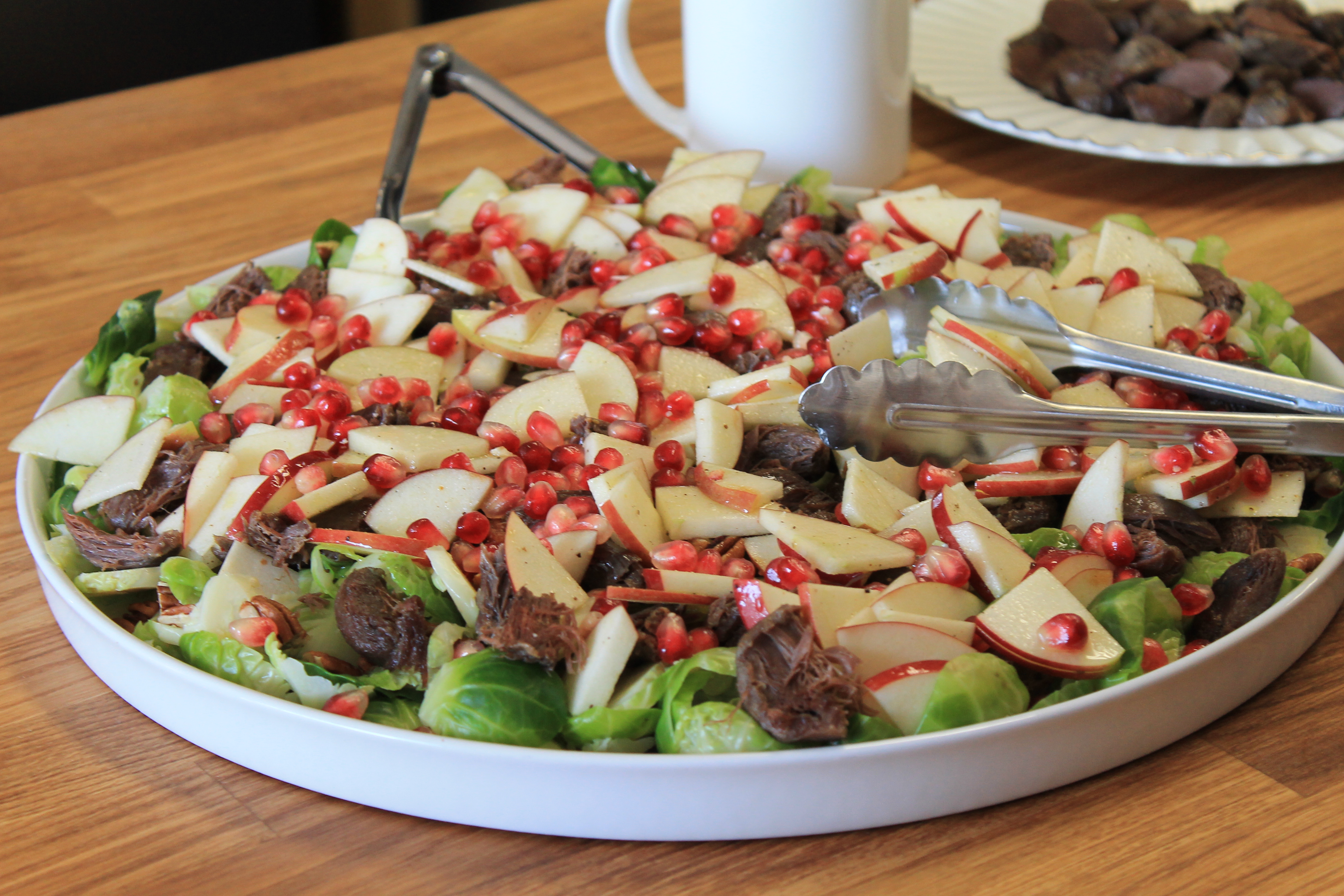 Si par contre vous n’êtes pas un fervent amateur d’abats, vous apprécierez peut-être plus cette salade fraîcheur composée de gésiers, de choux de Bruxelle blanchis, de fines tranches de pommes, d’oignons rouges, de pomme grenade et de vinaigrette aromatisée au sirop d’érable. Pour ma part, j’adore les abats et j’ai vraiment aimé le côté frais et croquant de cette salade bien balancée, avec ses petites explosions de saveurs de pomme grenade.