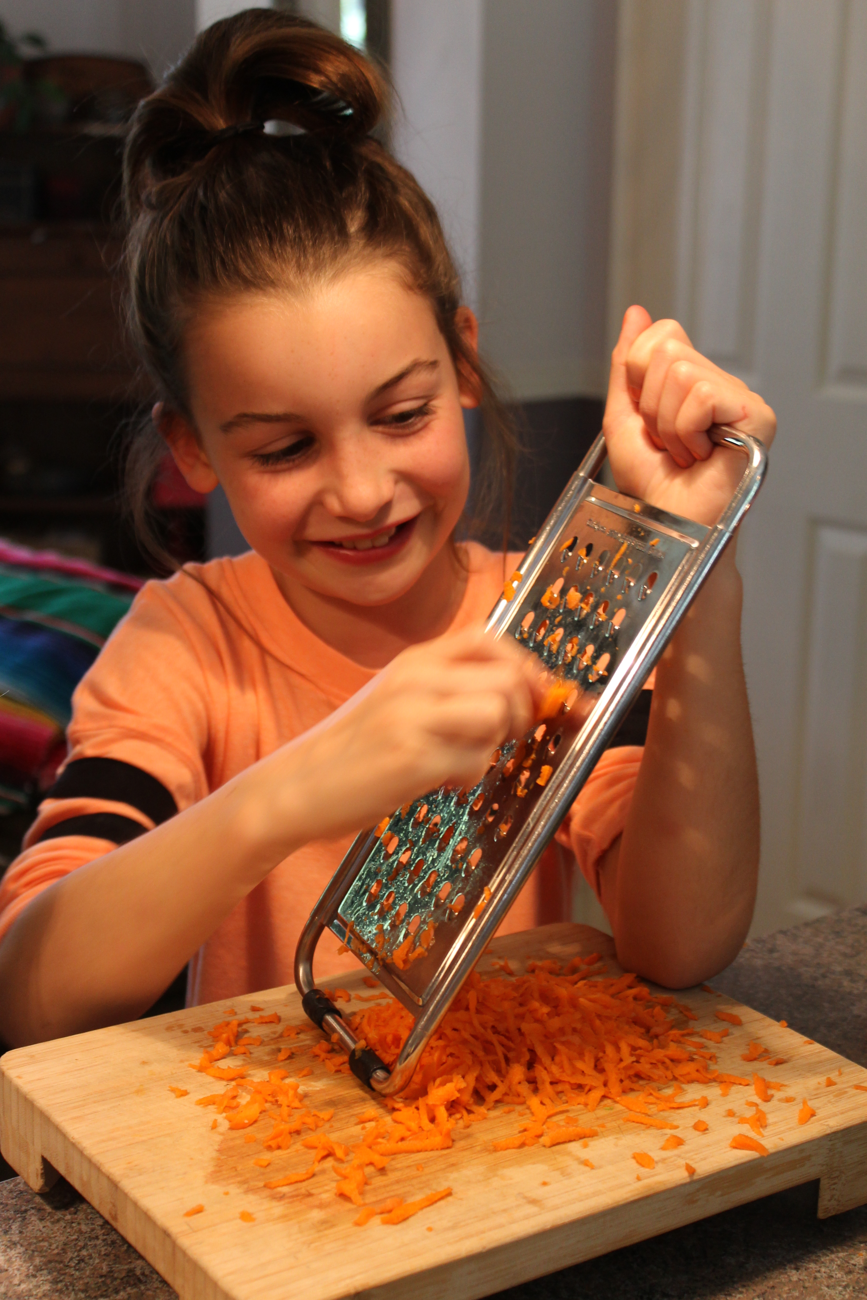 Elle peut également râper des légumes, mais comme je suis assez mère poule, je n’ai pas osé la laisser faire avant l’âge de 9 ou 10 ans.