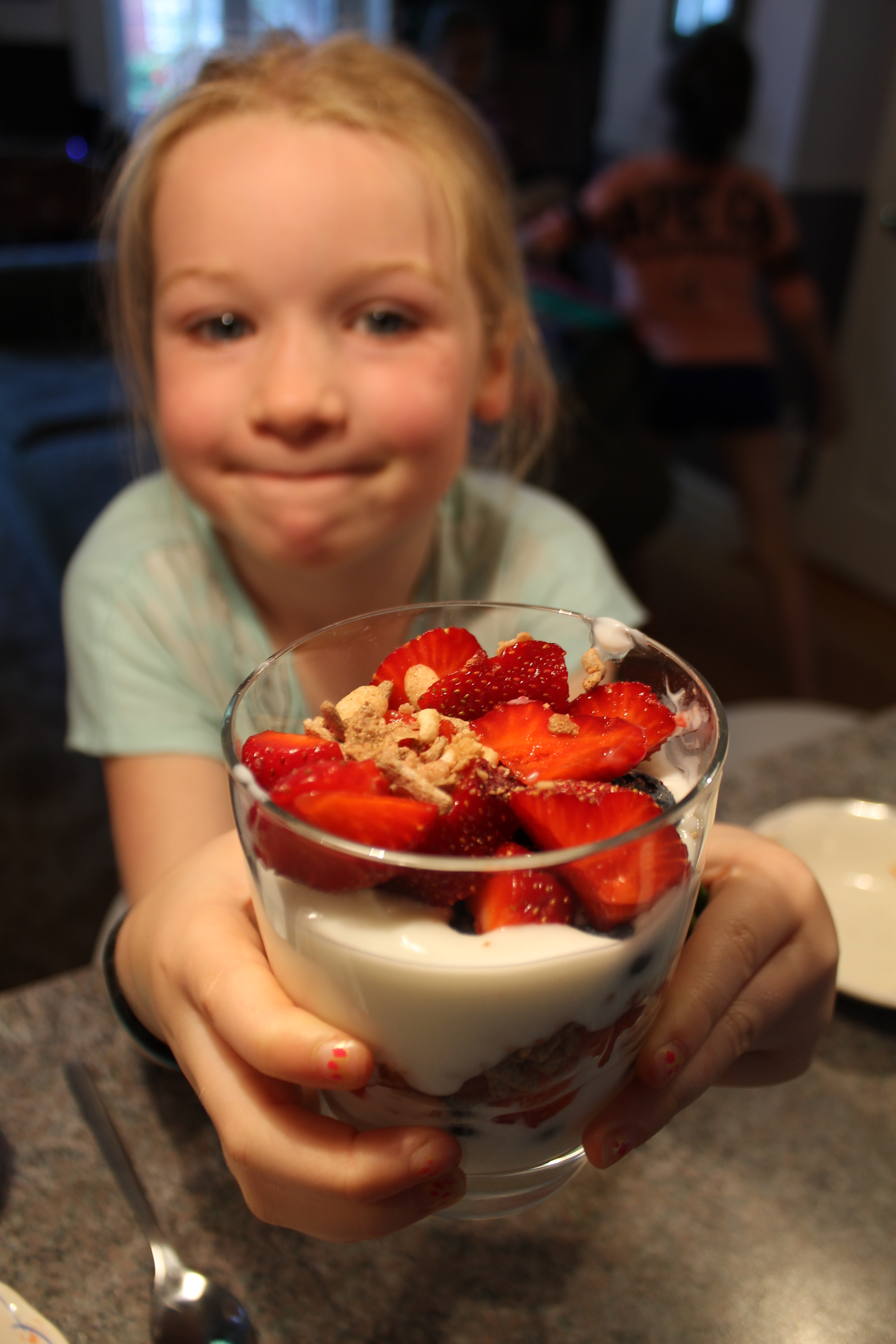 Mettez à la disposition des enfants des fruits frais coupés en morceaux, du yogourt et des granolas ou céréales riches en fibres et laissez aller leur créativité pour qu’ils préparent leur propre coupelle étagée. Attention de leur donner une coupelle à la grosseur de leur appétit, sinon, gare au gaspillage!